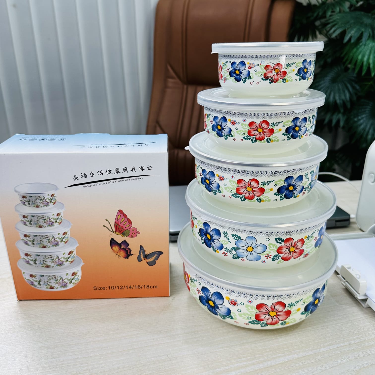 5-Piece Enamel Box Set with Lid Big Flower print