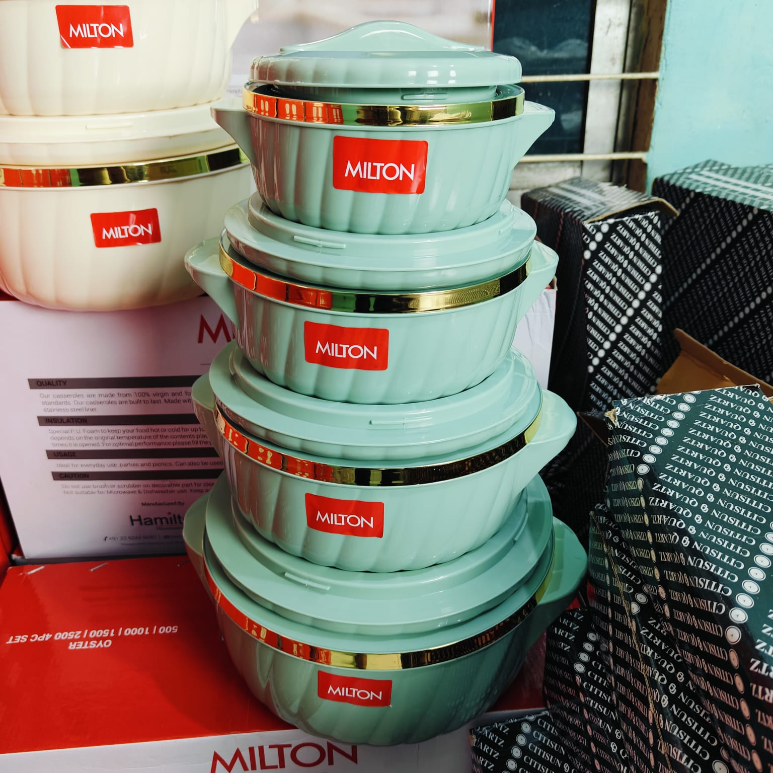 New 4 Pcs Milton Hotpot Set Golden Border (Mint Green)