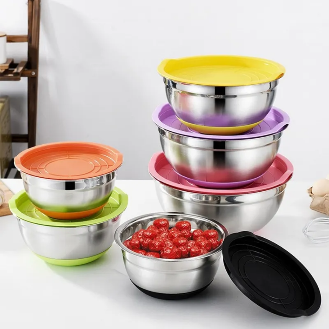 5 pcs Stainless Steel & Silicon Mixing Bowl set with lid